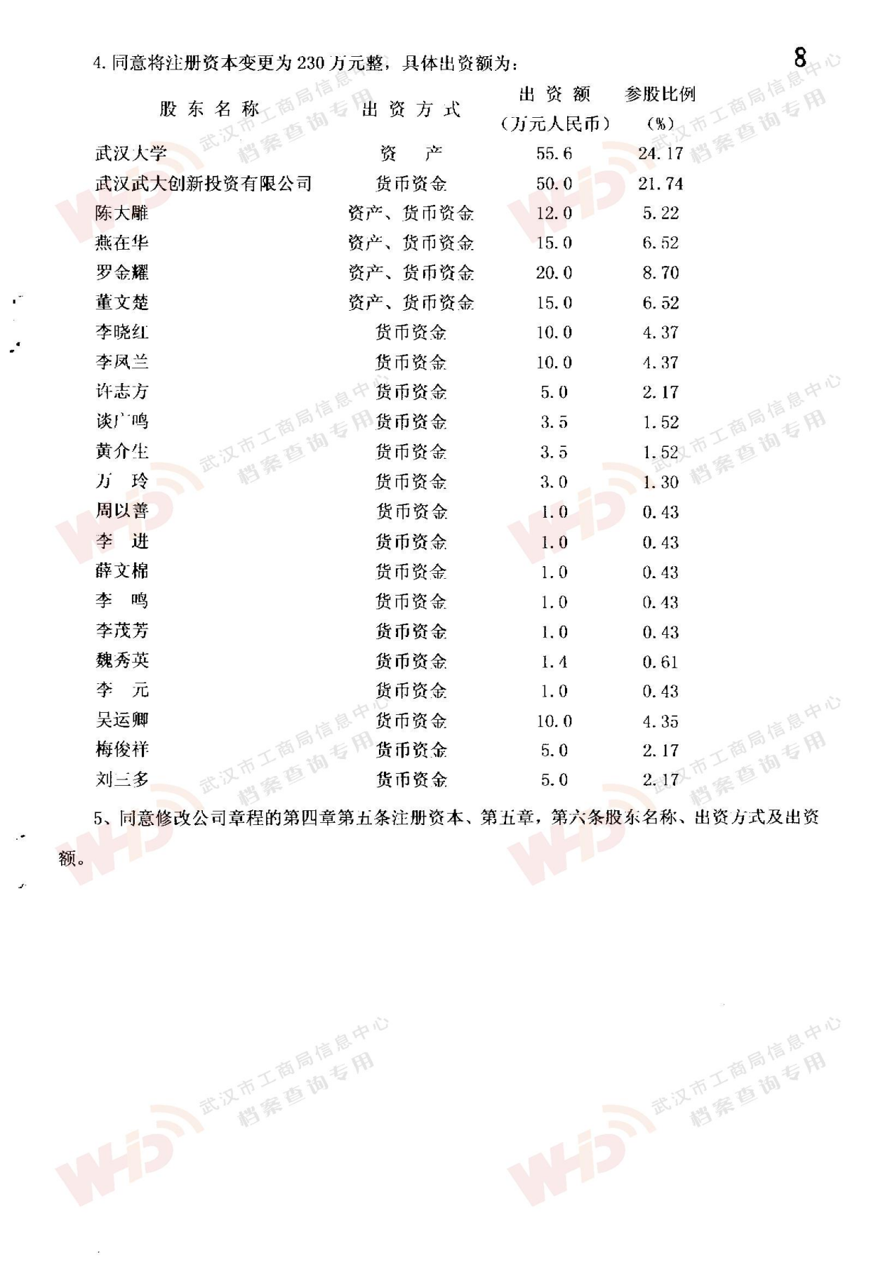 - 2008年8月8日武漢大學同意將所持武大云水股份劃轉給武漢大學資產經營投資管理有限責任公司。