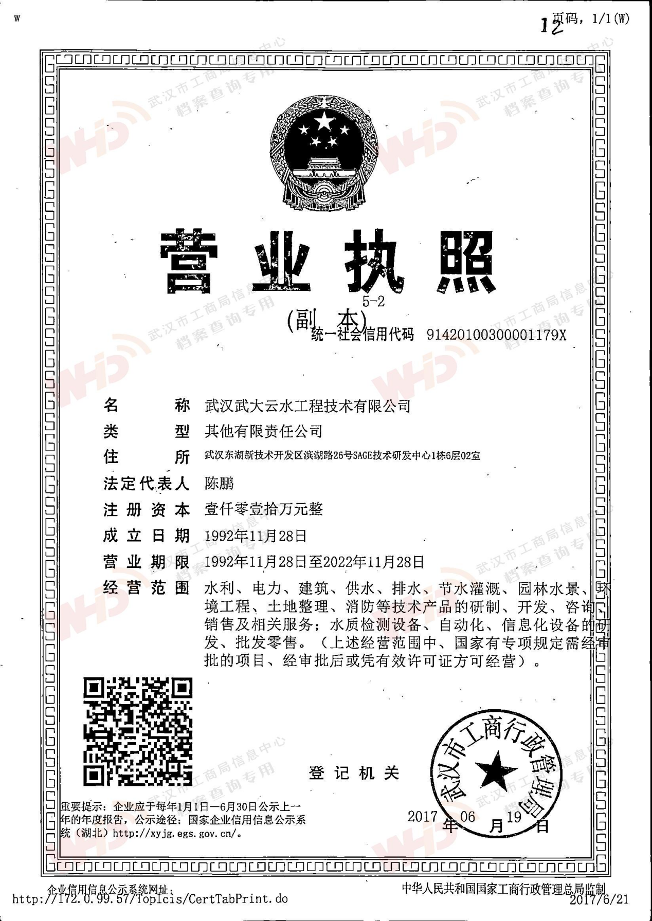 - 1992年11月12日任命陳大雕同志為武漢水利電力學院云水噴泉灌溉新技術有限公司董事長,并為法定代表人
